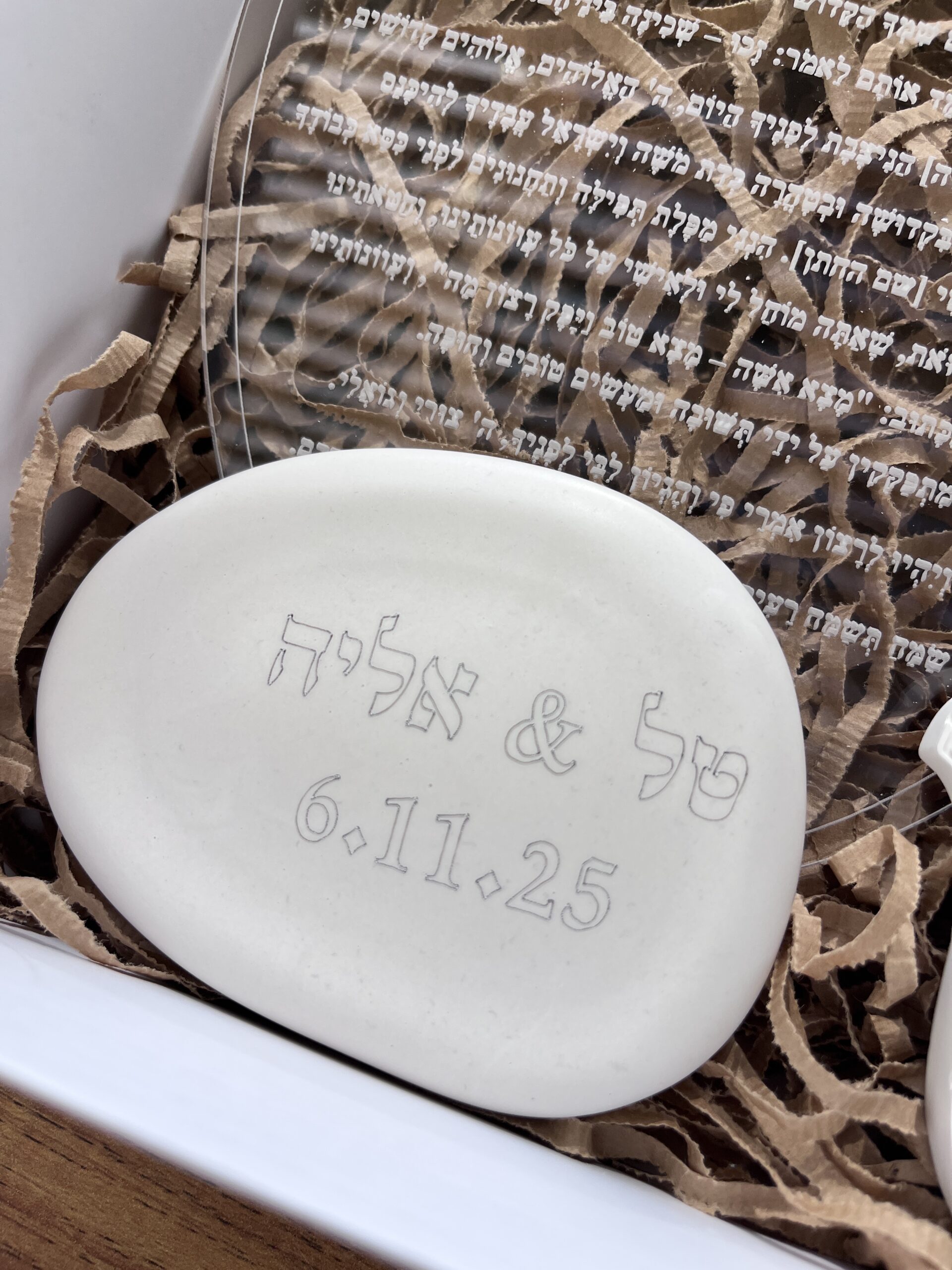 אבן עם חריטה של השמות ותאריך האירוע בעבודת יד