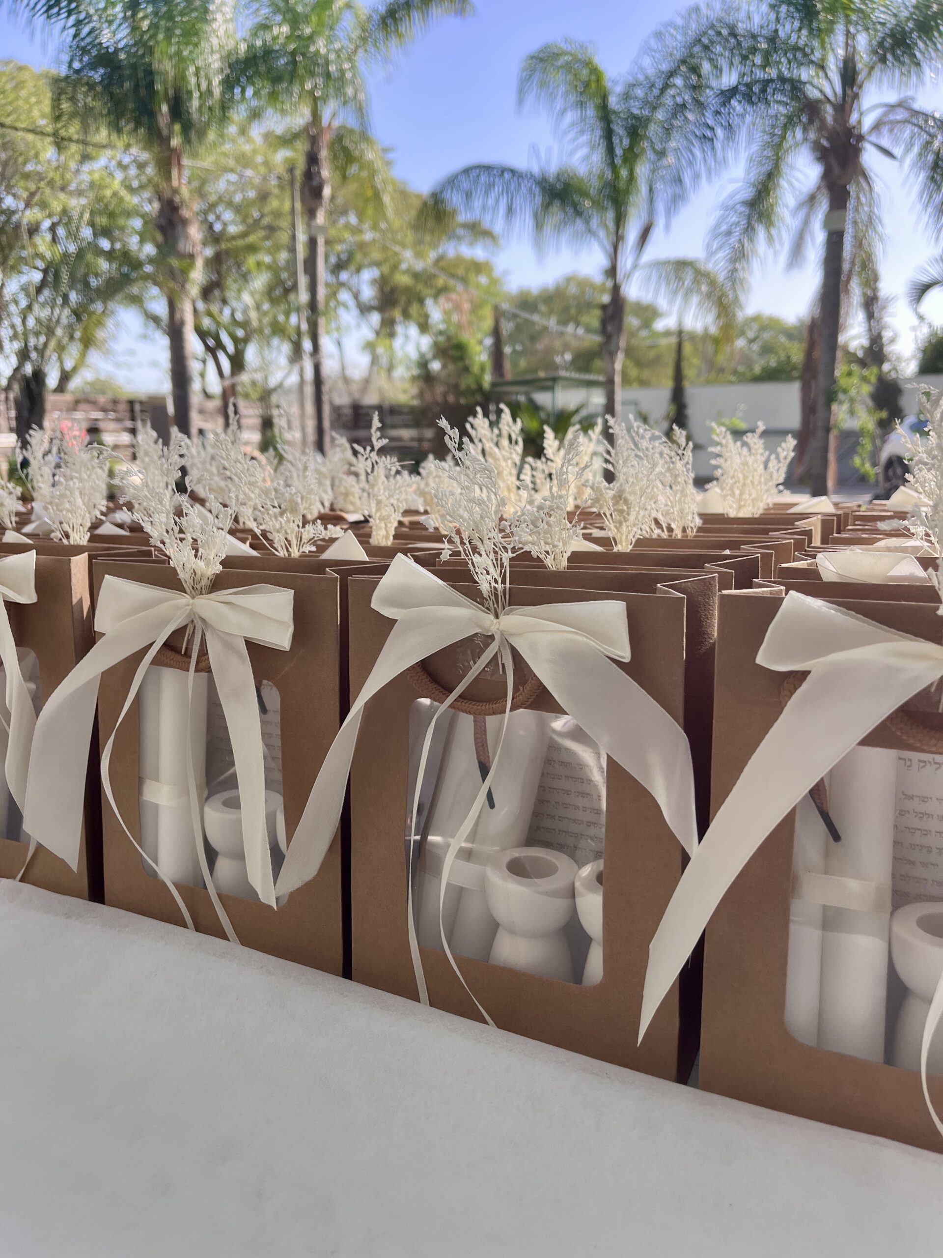 כל מארז מגיע ארוז בשקית , פפיון ופרחים יבשים.