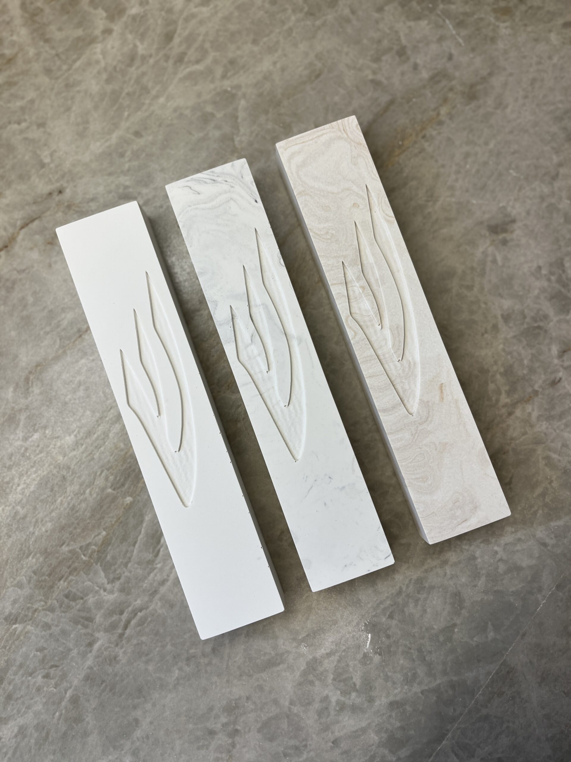 מזוזת בטון בגוון שייש בעבודת יד איכותית הנותנת מראה קלאסי ונקי לבית