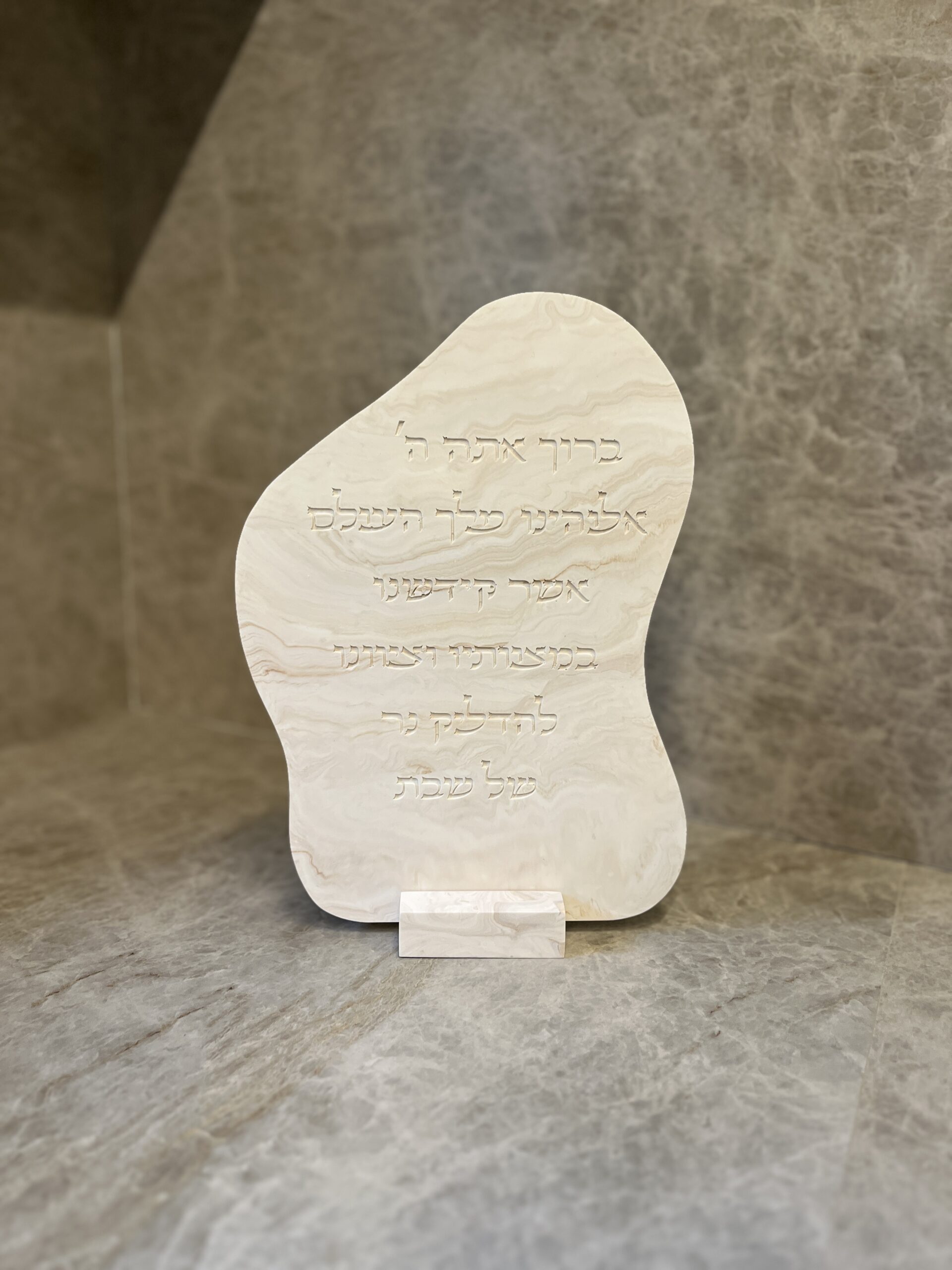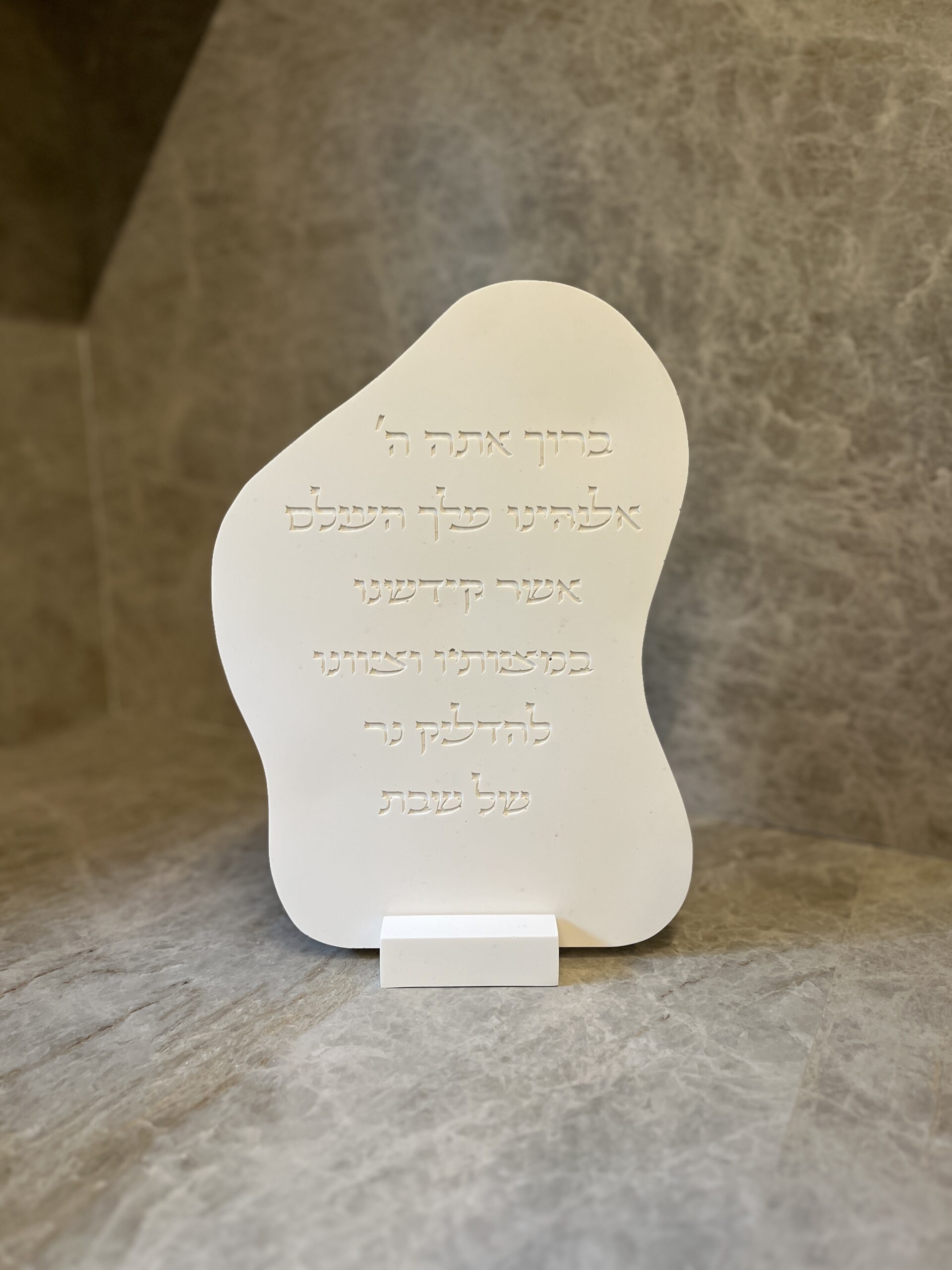 מעמד סדר הדלקת נרות מהודר לכבוד שבת קודש בעיצוב קלאסי ונקי בעבודת יד